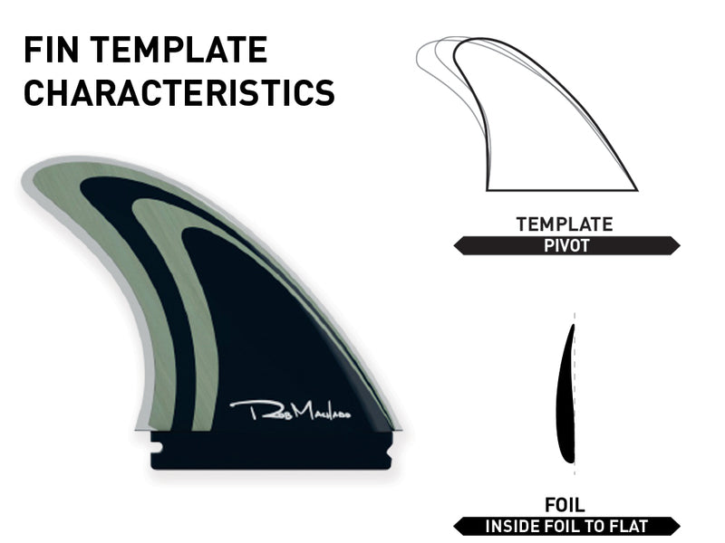 Starting from a more upright, performance template rather than a keel, this template enables tight turns and extreme control, while still providing the drive of a thruster. It has the glide and slide of a twin fin with the added transitional control provided by a small rear trailer, the Machado 2 + 1 Fin Set was designed to enable the freedom of Rob's favorite fish with the control of his favorite thruster.